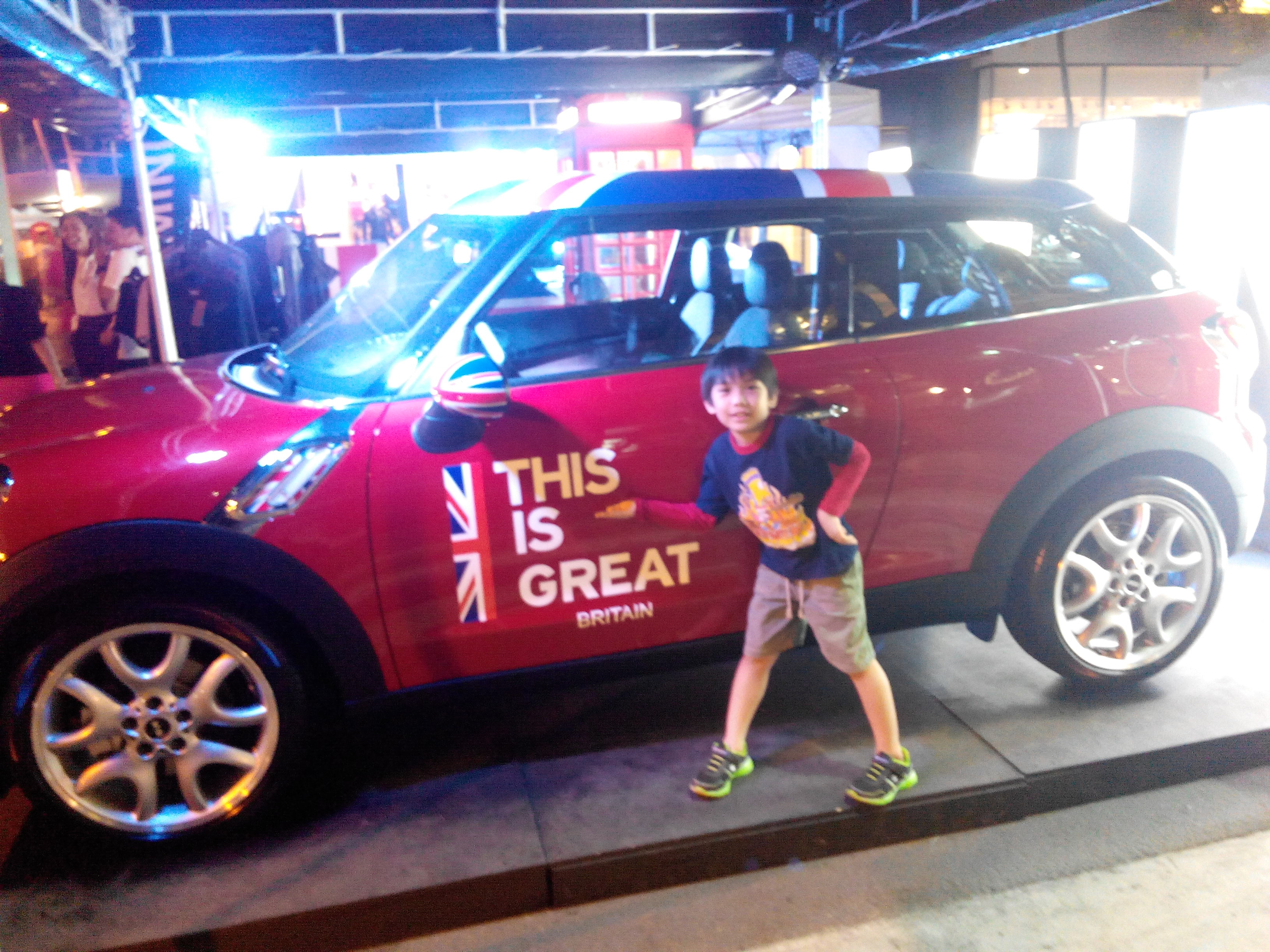 There were a lot of British-made cars on display. We first saw the Rolls Royce and the Mini-Cooper. We also saw some modern British fashion displayed and the first replica we had the kids take pictures with was the old school phone booth. Now I’m not sure why there was a phone booth there, Wikipedia credits its invention to American William Gray although there was a mention of it being installed for the first time in London in May 1903.