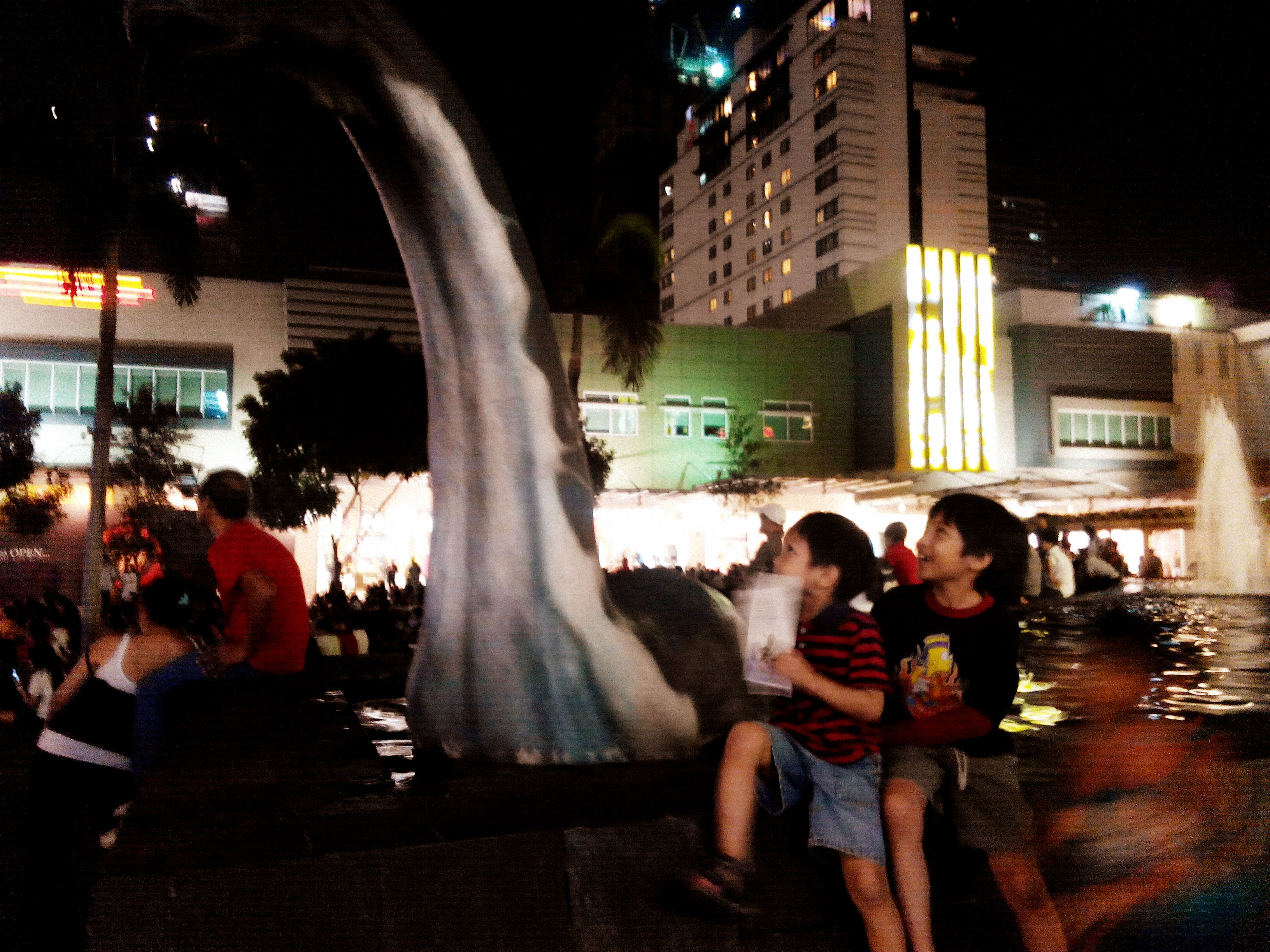 One of the really cool exhibits was the one of the Loch Ness Monster which, to Pablo, looked like a floating Brachiosaurus. They put it in one of the fountain pools and it was made of light mache so it was floating around. The kids were laughing when it neared them.