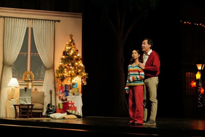The vibe is nostalgic. If you don’t immediately tear up on the first number, which I did, the scene for “Isang taong lumipas” by Ryan Cayabyab will surely win you over, especially when the lights slowly dim and the five young friends sit together to watch the twinkling of the lights from the beautiful lanterns and parols adorning the homes in Tres Reyes.